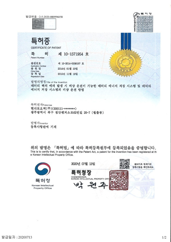 배터리 랙의 에러 발생 시 비상 운전이 가능한 배터리 에너지 저장 시스템 및 배터리 에너지 저장 시스템의 비상운전 방법 특허 > 산업재산권현황