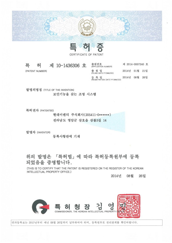 보안기능을 갖는 조명 시스템 특허 > 산업재산권현황