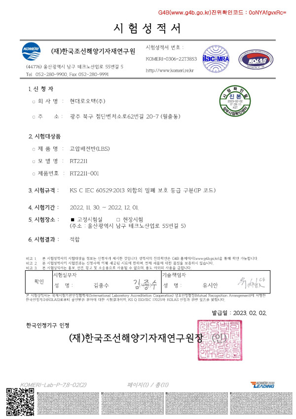 고압배전반(LBS) 시험성적서 > 산업재산권현황